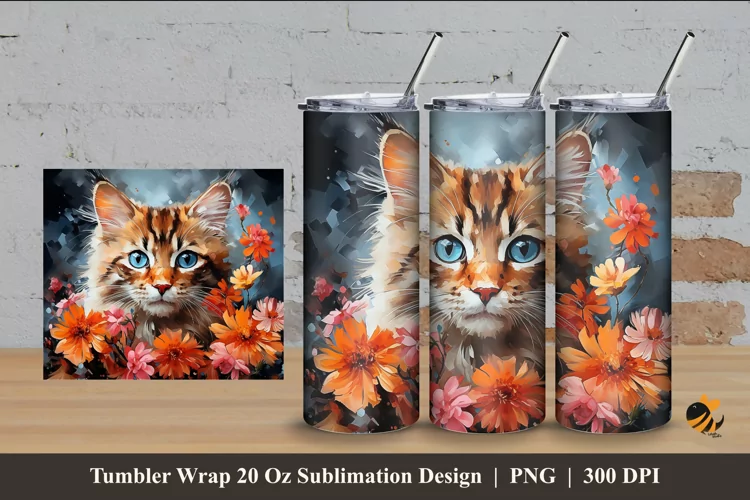 Watercolor Illustration Sublimation Design Watercolor Sublimation Tumbler Wrap Tumbler Wrap Design Watercolor Tumbler Wrap Cat Flower Tumbler Wrap Cat Flower Sublimation Cat Flower Watercolor Cat Flower Watercolor Sublimation
