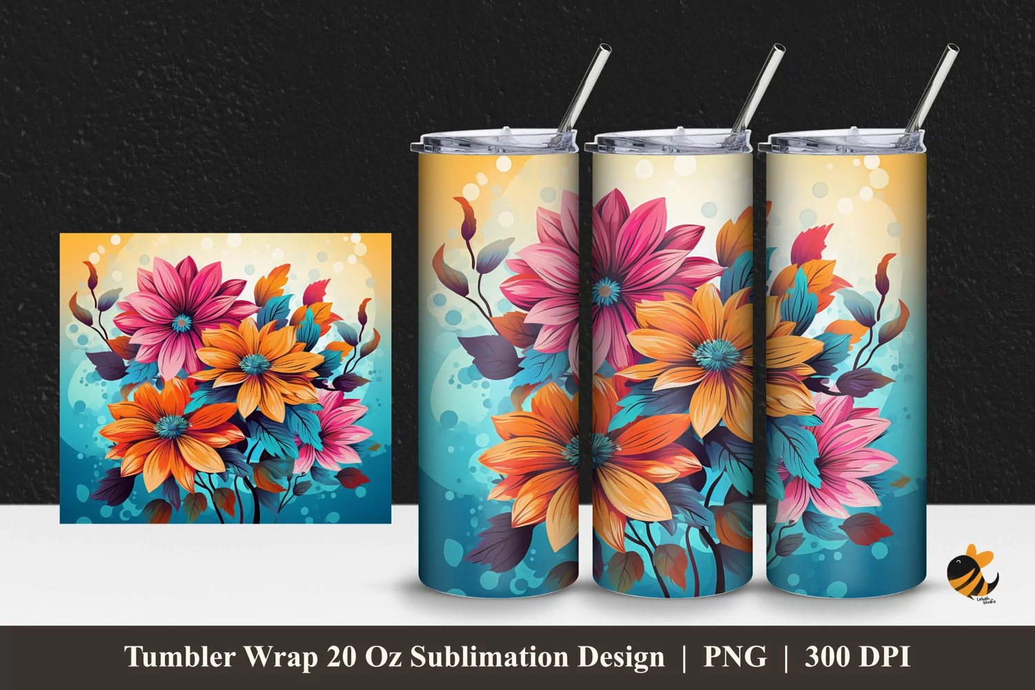 Similar Design Products to Flowers Colorful Tumbler Wrap Sublimation Design 1