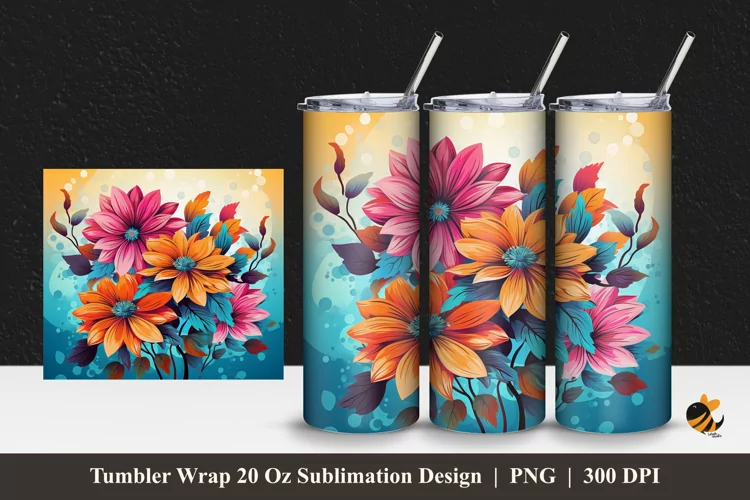 Flowers Colorful Tumbler Wrap Sublimation Design