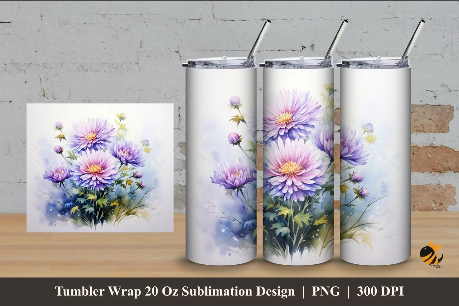 Similar Design Products to Aster Flower Tumbler Wrap Sublimation Design 4