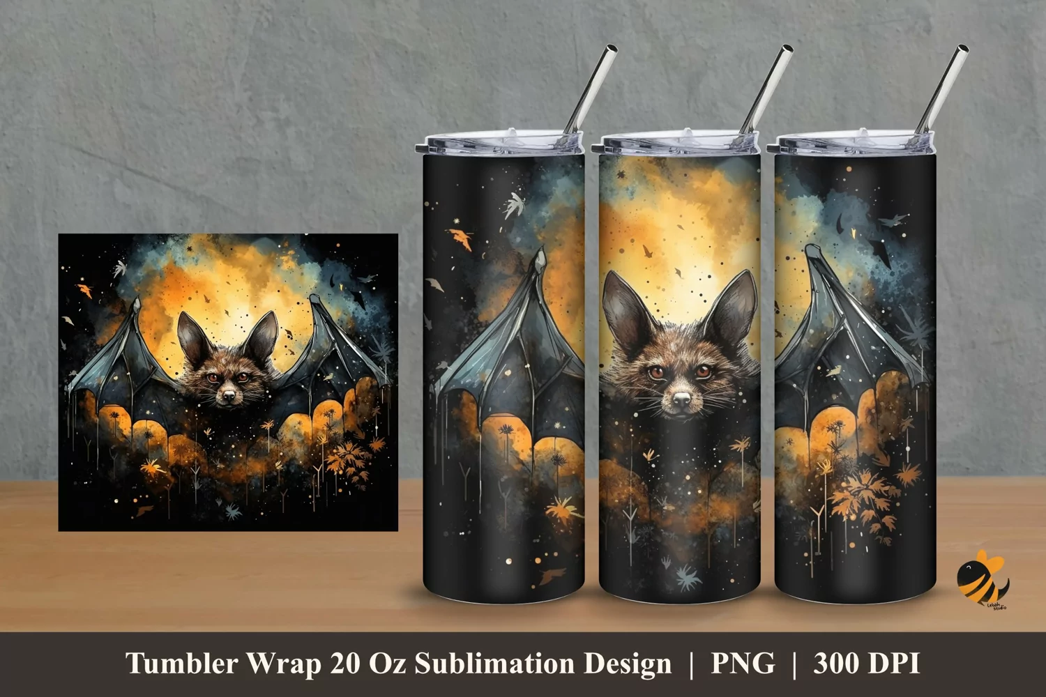Bat at Night Tumbler Wrap Sublimation Design 2 example image 1
