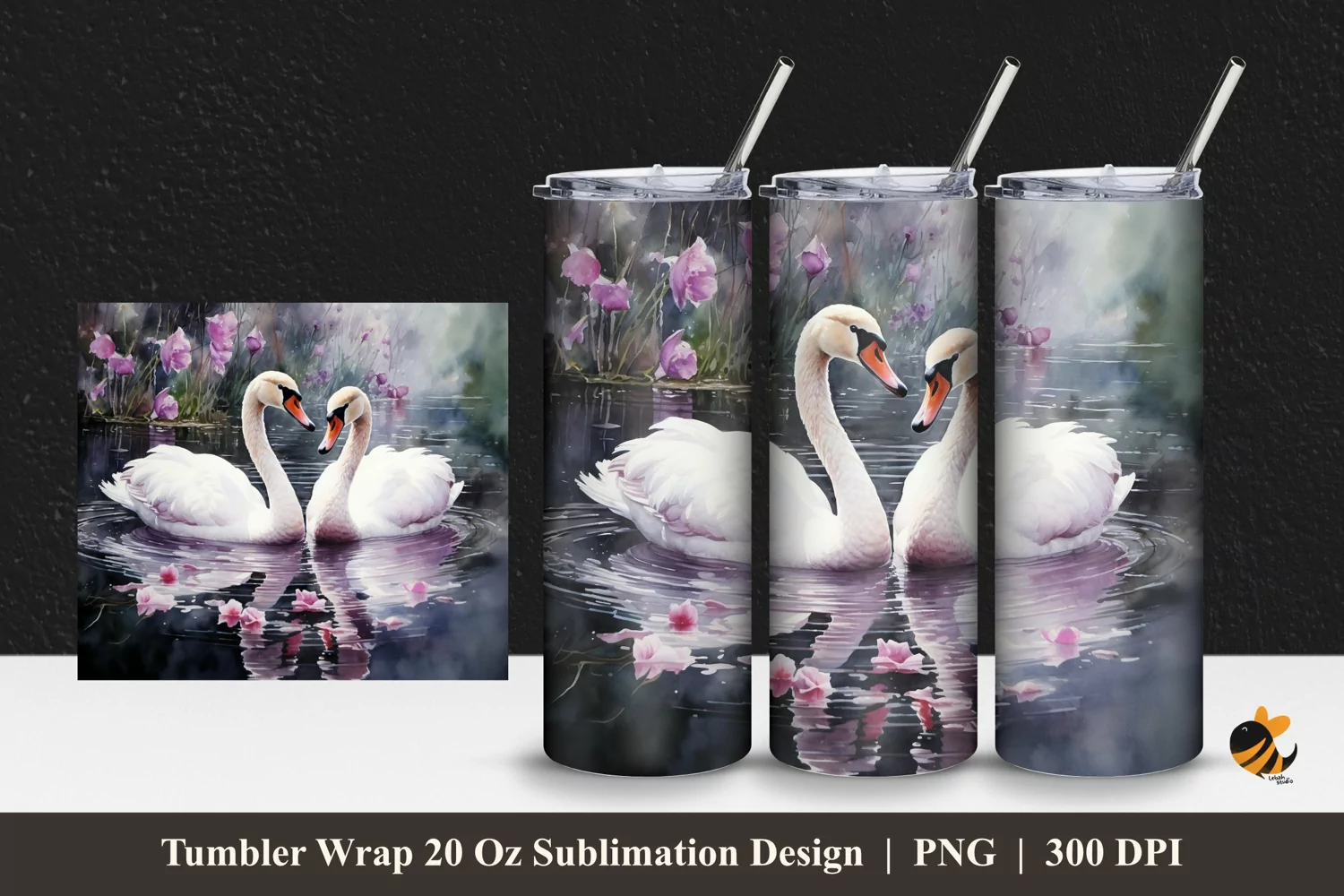 Lovely Swans Tumbler Wrap Sublimation Design 1 example image 1