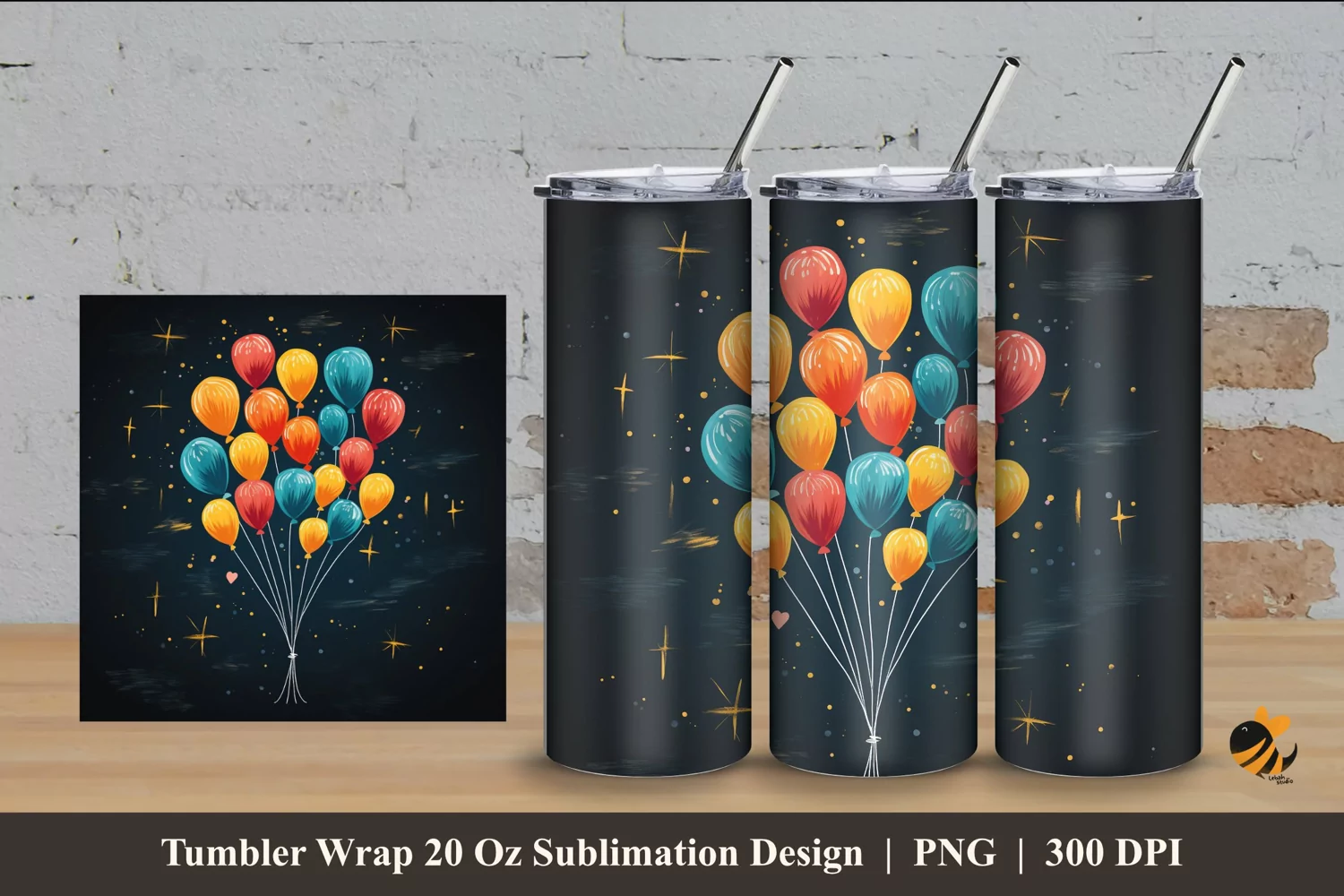 Children Balloons Tumbler Wrap Sublimation Design 4 example image 1