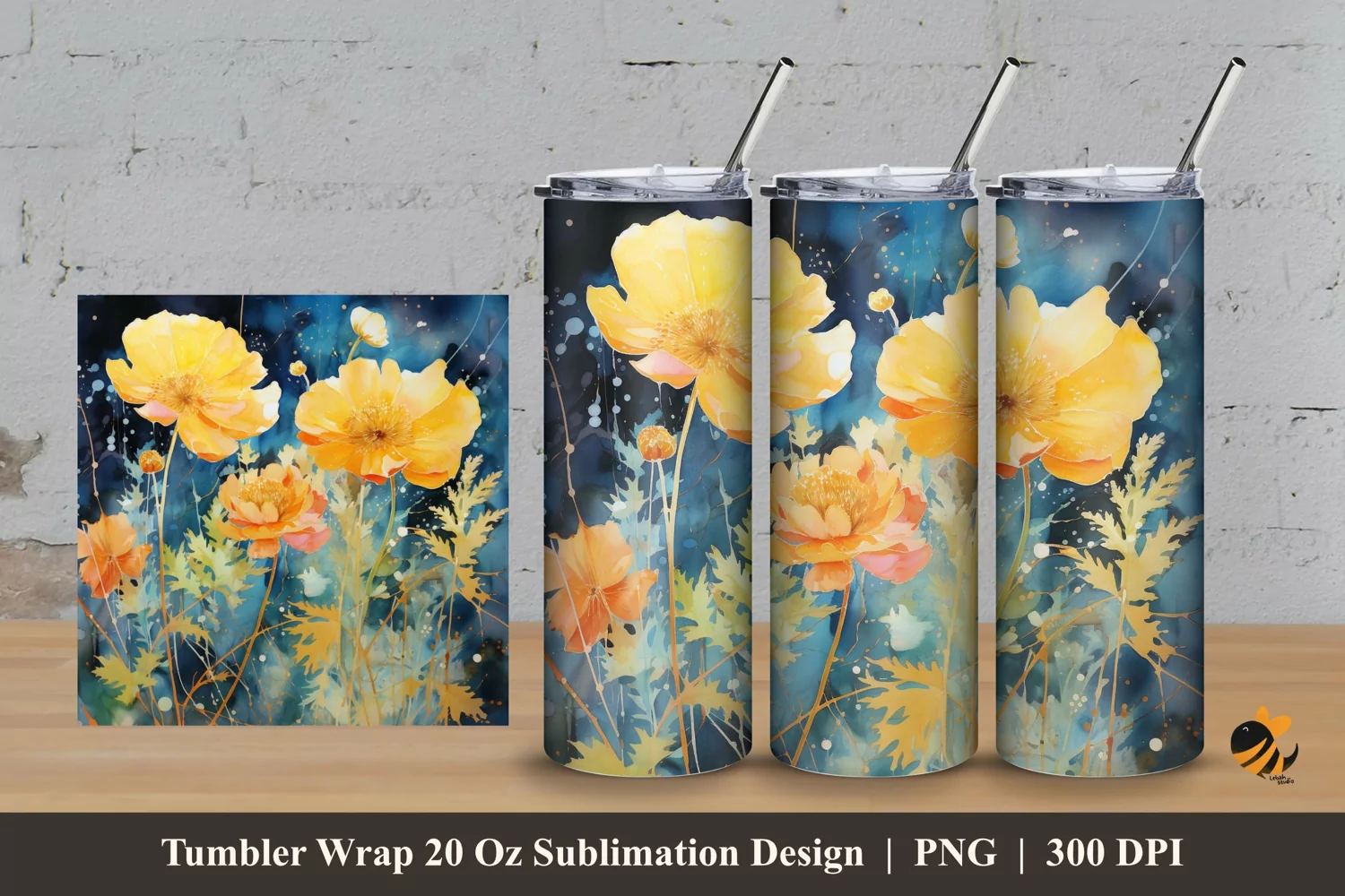 Golden Flower Tumbler Wrap Sublimation Design 3 example image 1