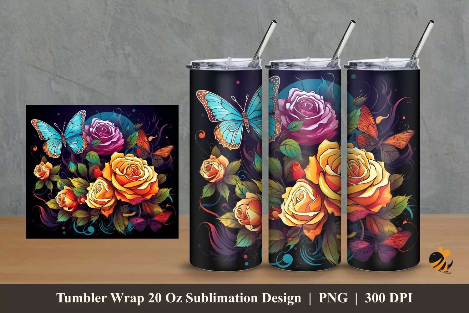 Butterfly and Rose Tumbler Wrap Sublimation Design 2 example image 1