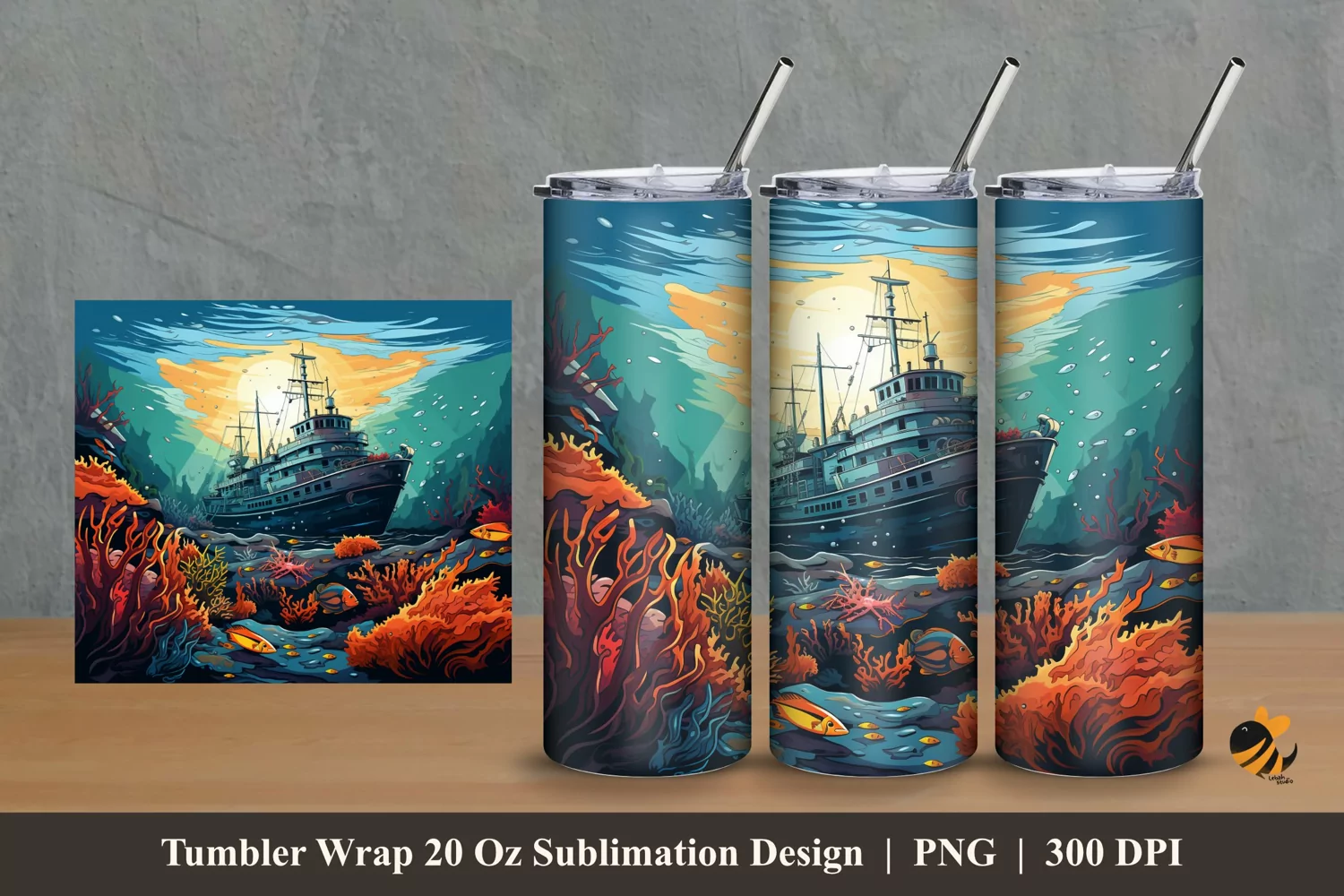 Shipwreck Tumbler Wrap Sublimation Design 2 example image 1