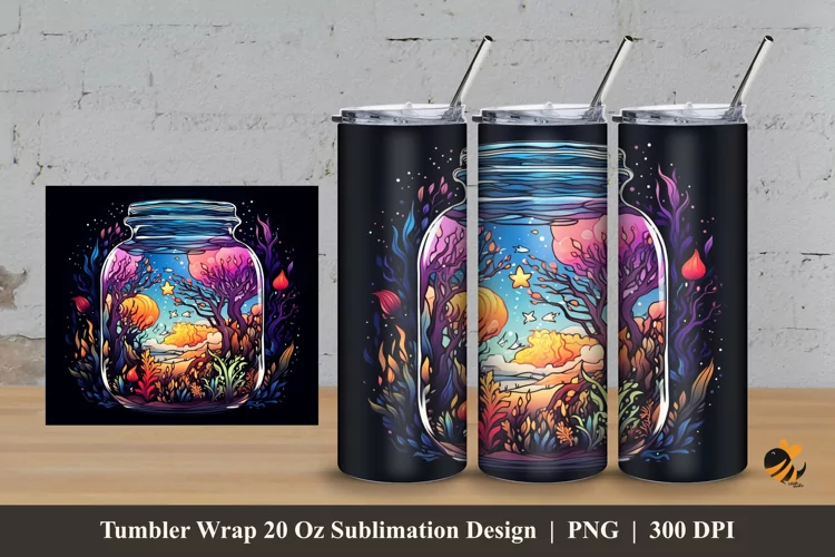 Fantasy Jar Tumbler Wrap Sublimation Design 3 example image 1