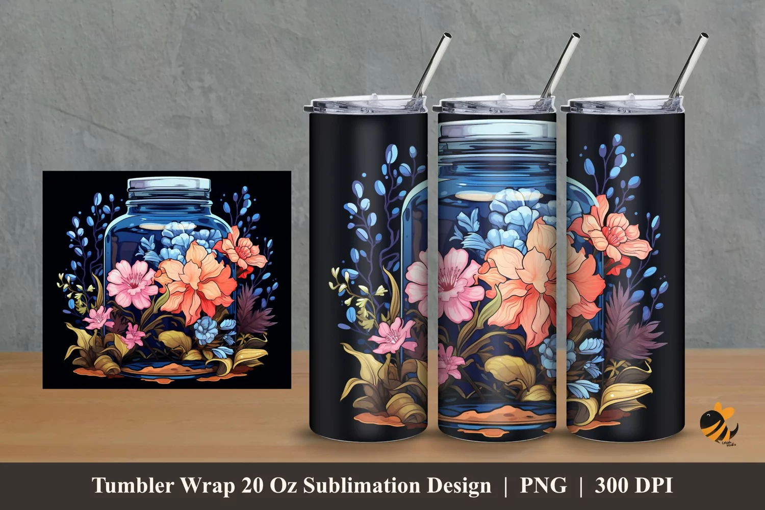 Flower and Jar Tumbler Wrap Sublimation Design 2 example image 1
