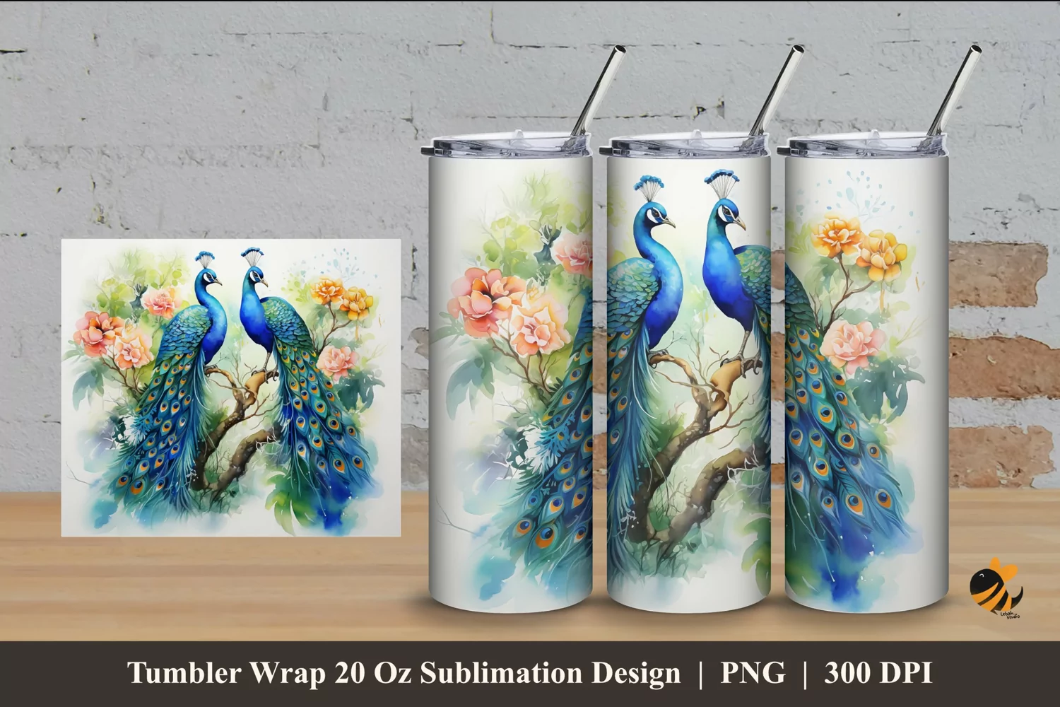 Peacock Nature Tumbler Wrap Sublimation Design 4 example image 1