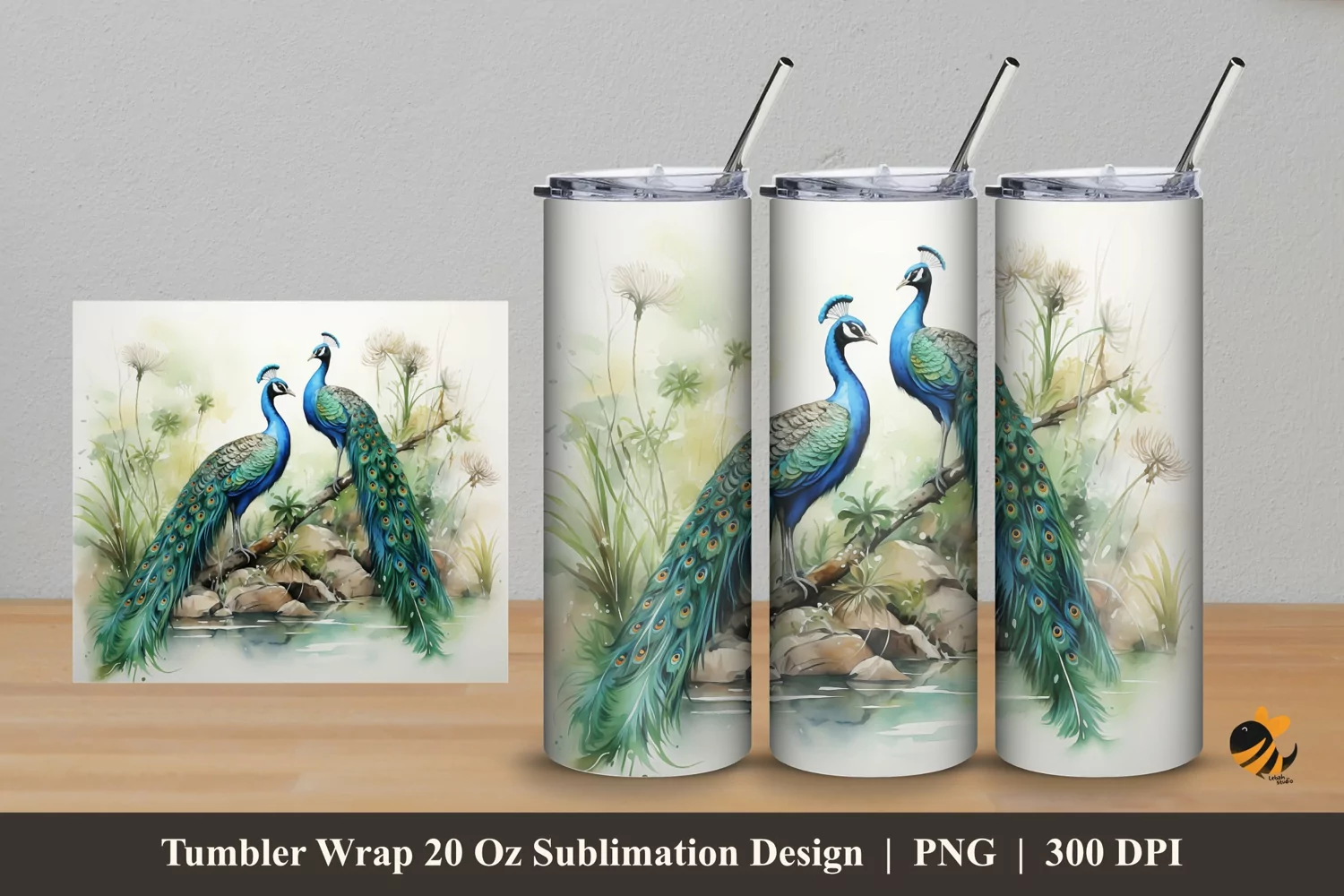 Peacock Nature Tumbler Wrap Sublimation Design 5 example image 1