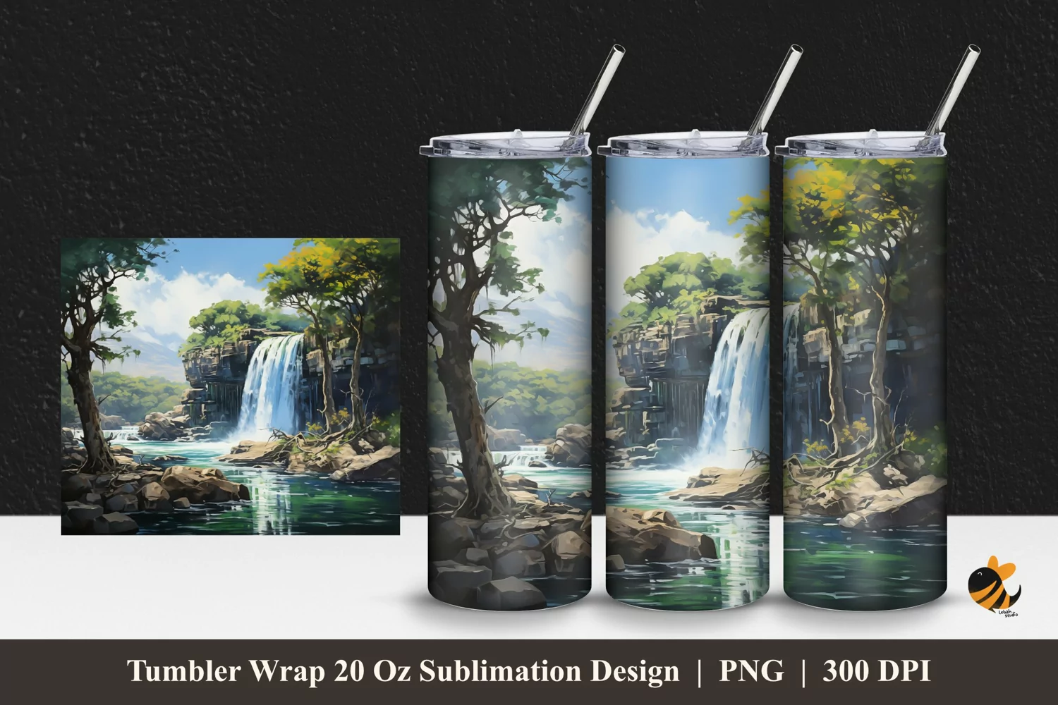 Big Waterfall Abstract Tumbler Wrap Sublimation Design 1 example image 1