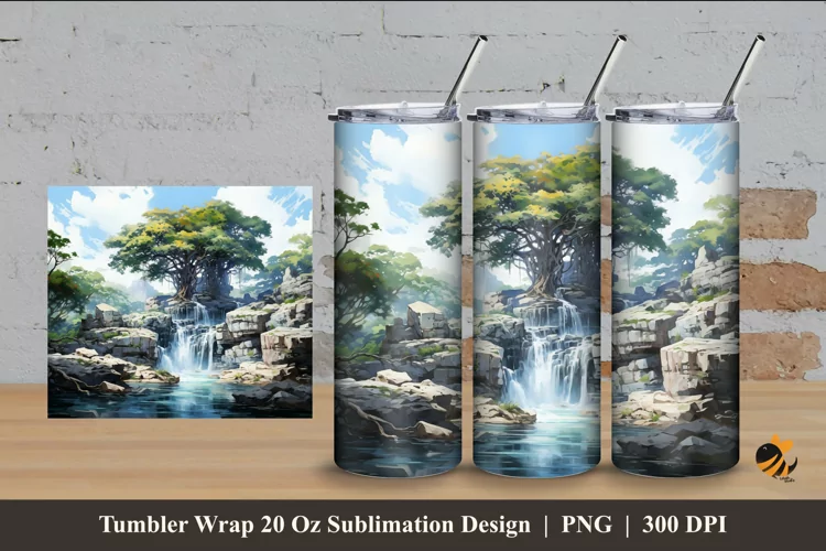 Big Waterfall Abstract Tumbler Wrap Sublimation Design 4