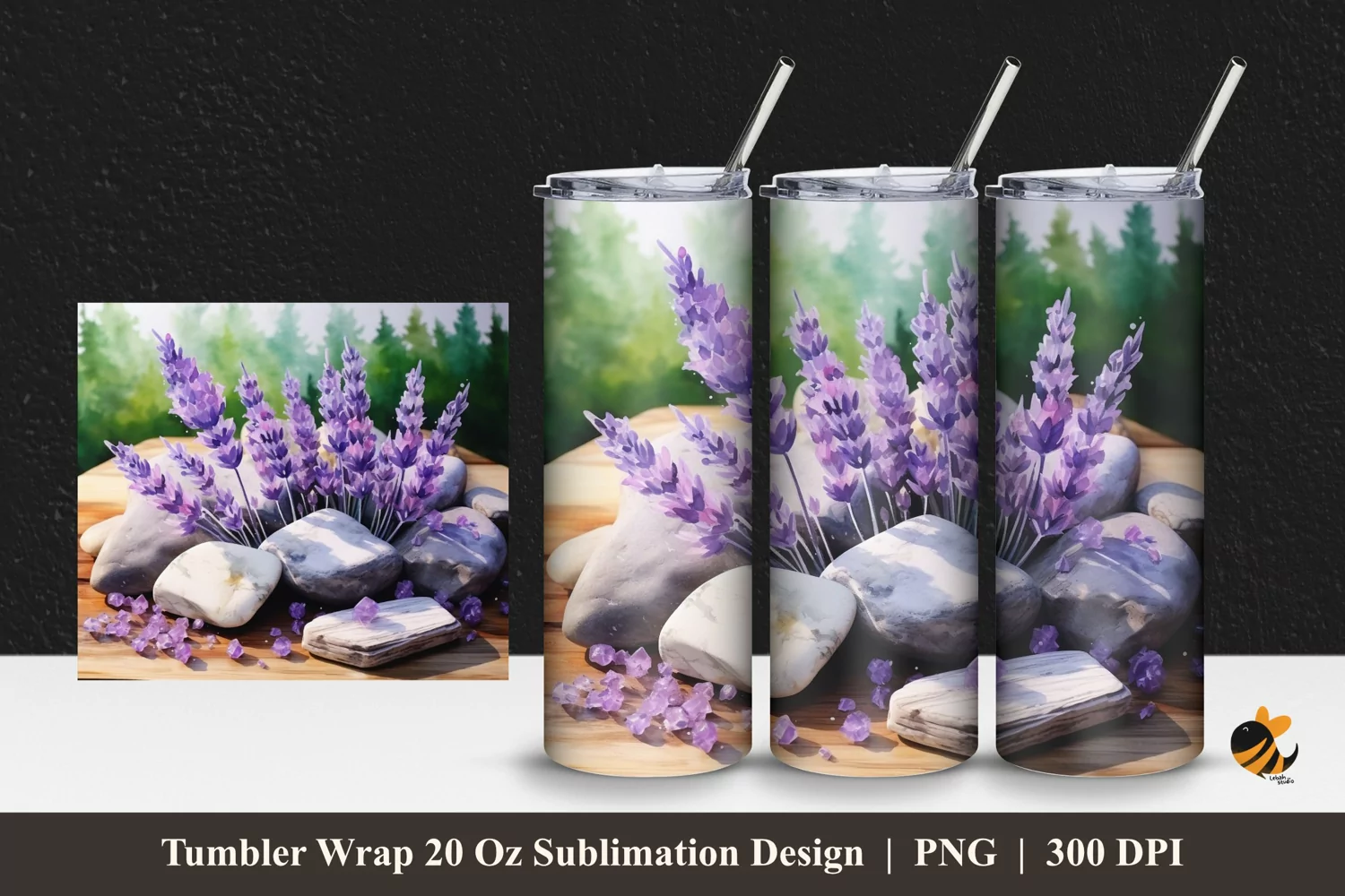 Stone and Lavender Tumbler Wrap Sublimation Design 1