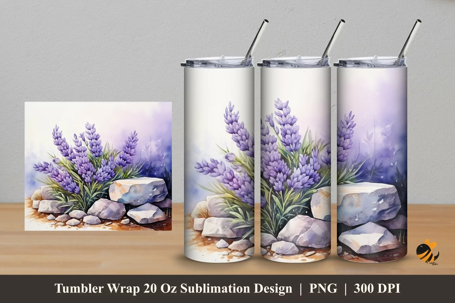 Stone and Lavender Tumbler Wrap Sublimation Design