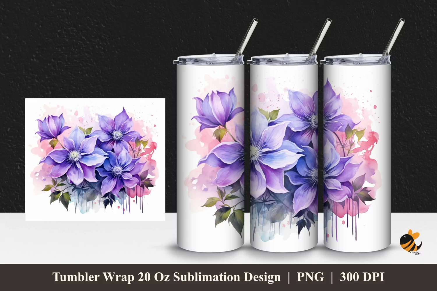 Clematis Flower Tumbler Wrap Sublimation Design 1 example image 1
