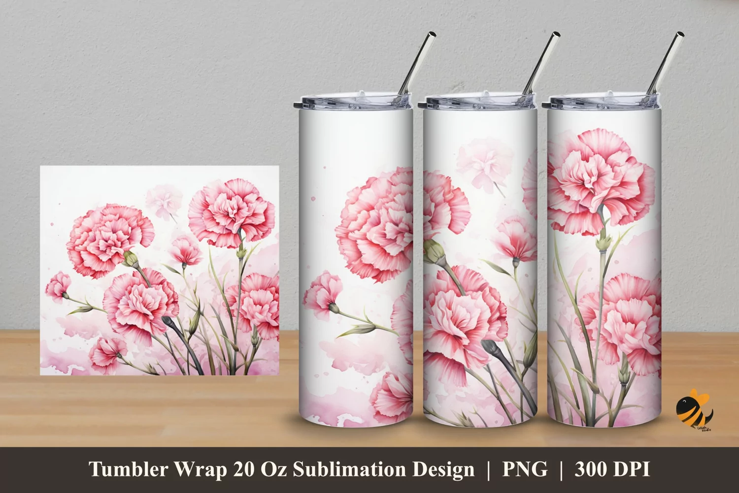 Carnation Flower Tumbler Wrap Sublimation Design 5 example image 1