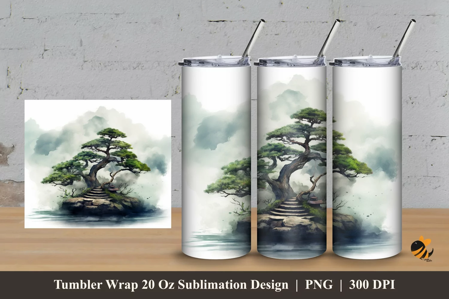 Misty Bonsai Tumbler Wrap Sublimation Design 3