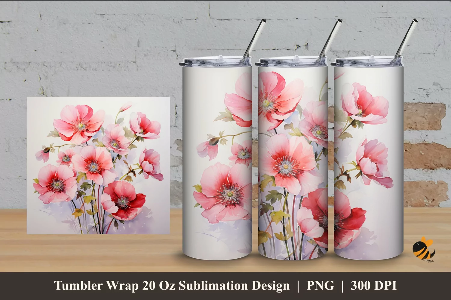 Painting Blossom Flower Tumbler Wrap Sublimation Design 4 example image 1