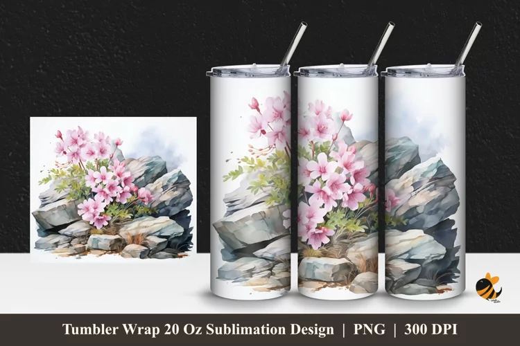 Flowering Stone Tumbler Wrap Sublimation Design 1