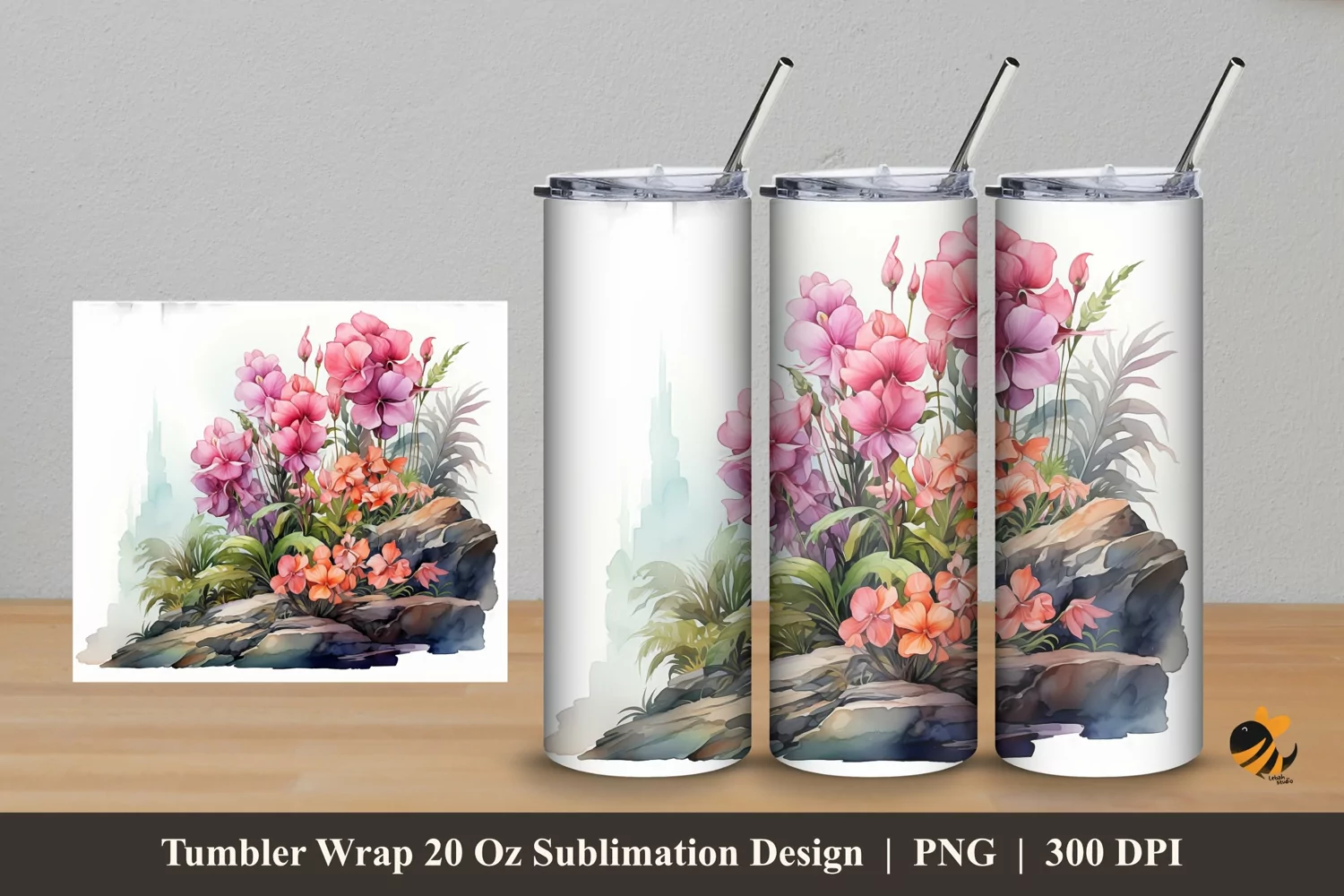 Flowering Stone Tumbler Wrap Sublimation Design 5 example image 1