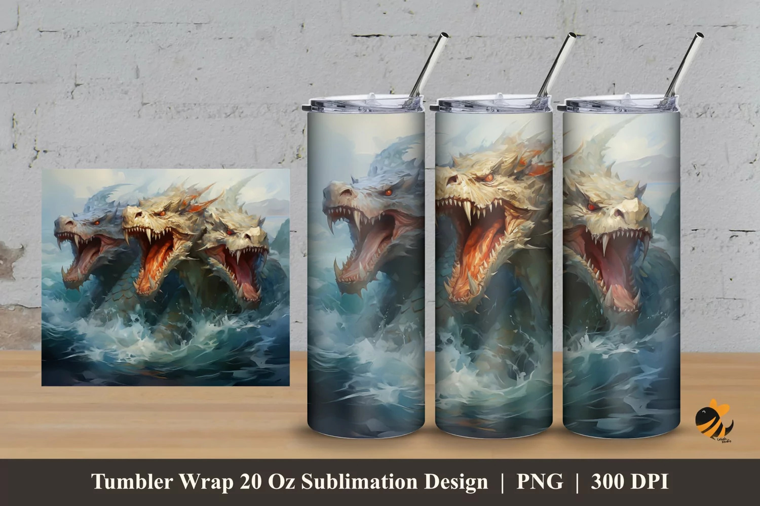 Water Dragon Tumbler Wrap Sublimation Design 3 example image 1