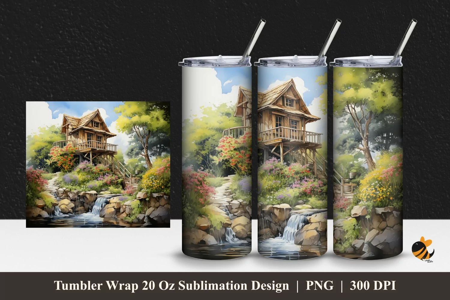 Tree House Tumbler Wrap Sublimation Design 1 example image 1