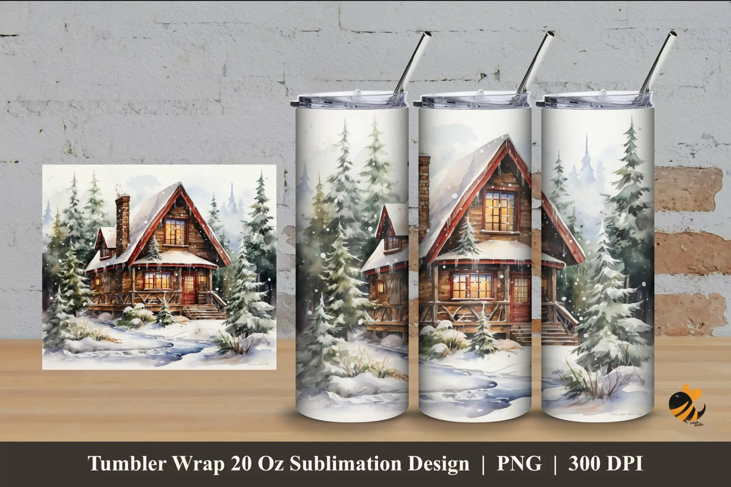 Winter House Tumbler Wrap Sublimation Design 4 example image 1