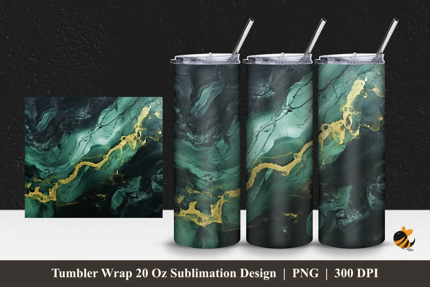 Black Green Marble Tumbler Wrap Sublimation Design 1 example image 1