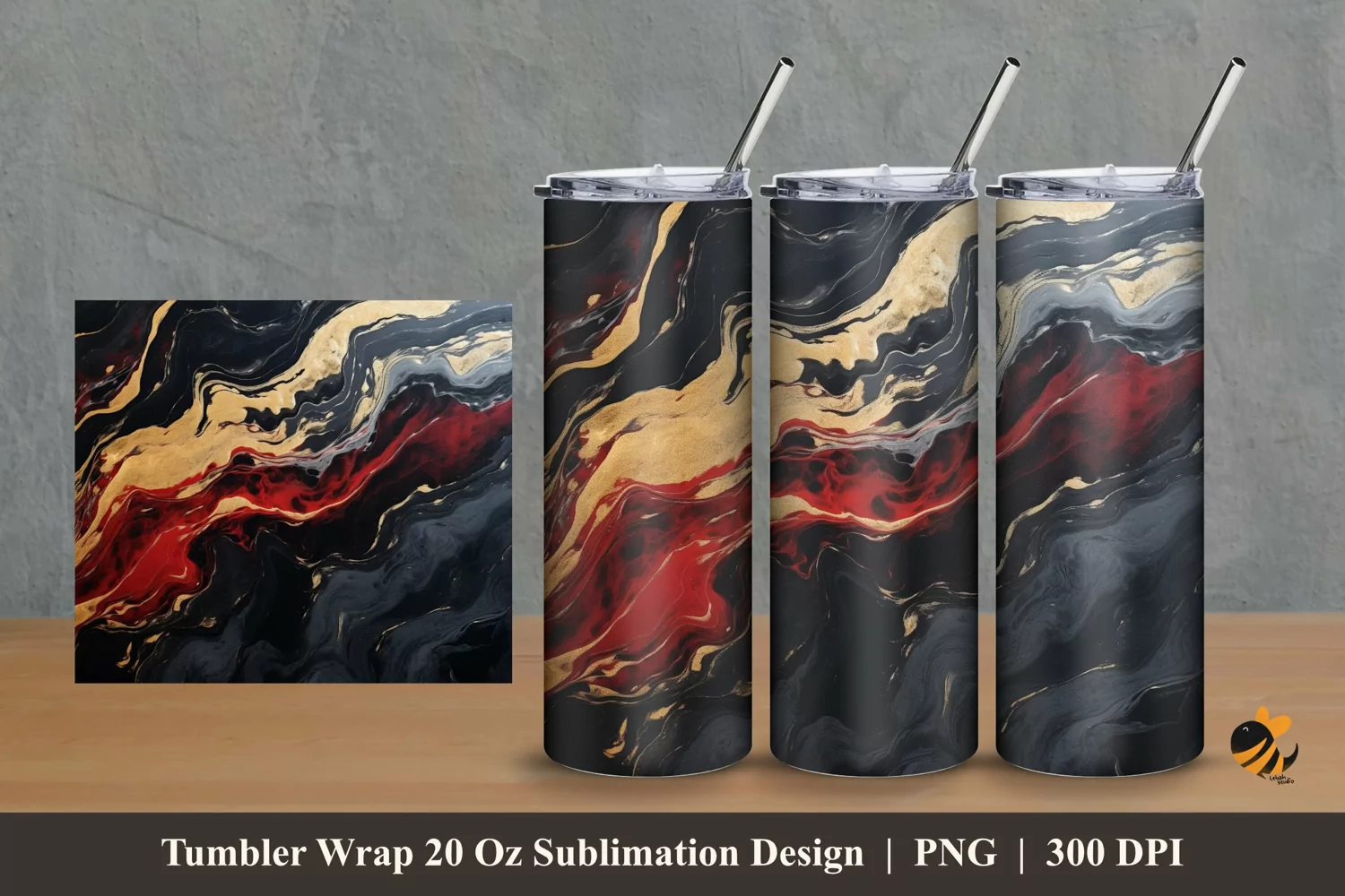 Black Red Marble Tumbler Wrap Sublimation Design 2 example image 1
