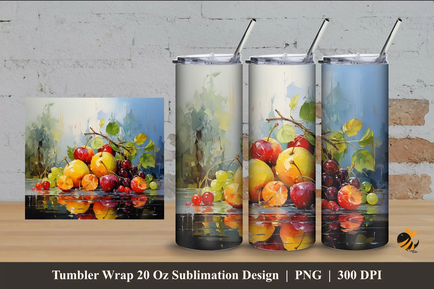 Fresh Fruit Tumbler Wrap Sublimation Design 4 example image 1