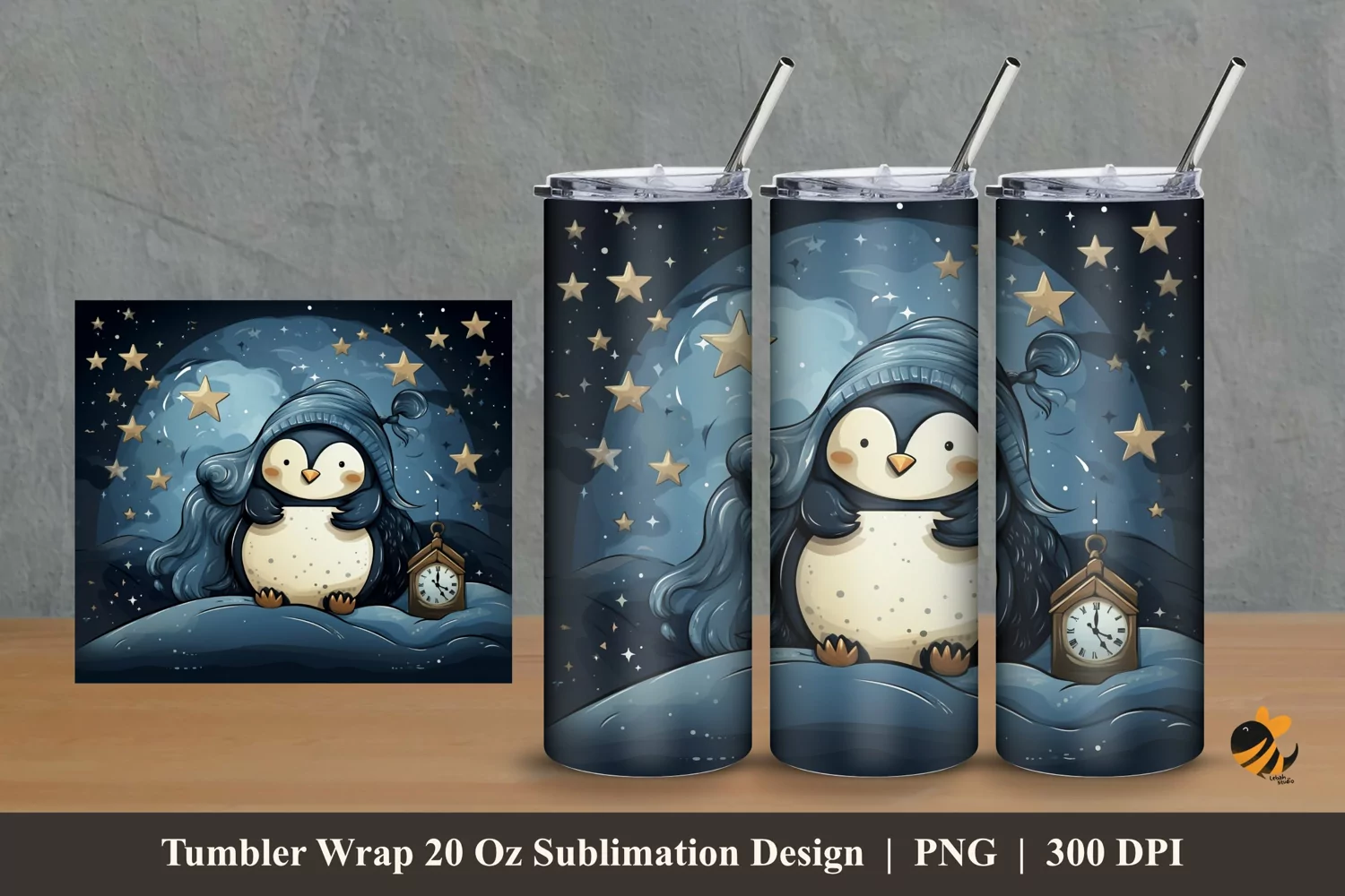 Penguin Starry Night Tumbler Wrap Sublimation Design 2 example image 1