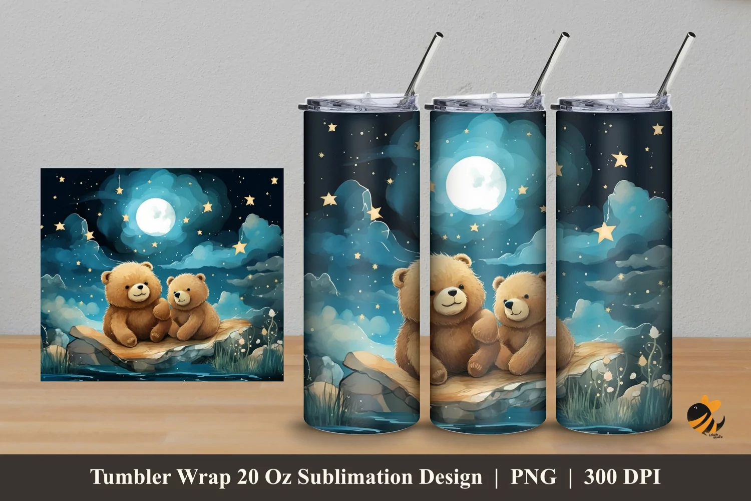 Playing Bear Tumbler Wrap Sublimation Design 5 example image 1