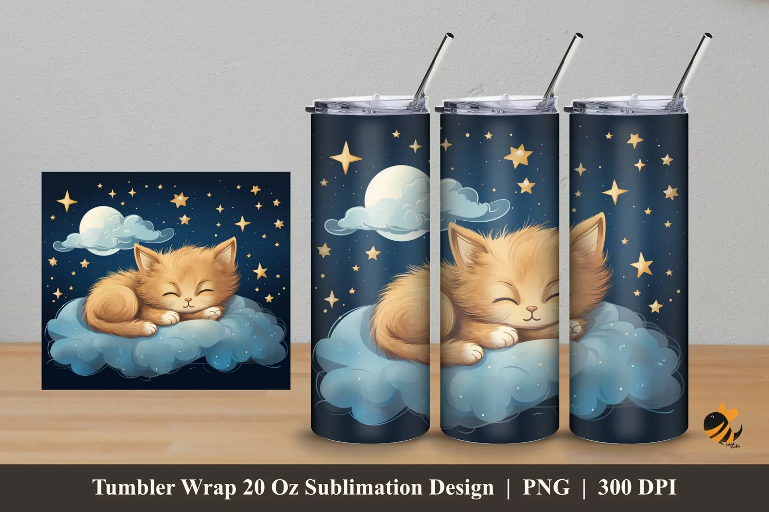Cute Cat Sleep Tumbler Wrap Sublimation Design 5 example image 1