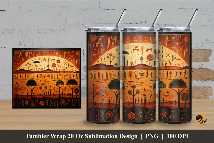 Ancient Relief Tumbler Wrap Sublimation Design 4 example image 1