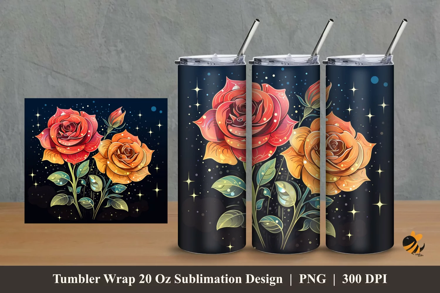 Starry Rose Tumbler Wrap Sublimation Design 2 example image 1