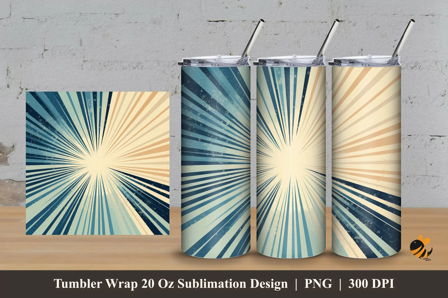 Retro Blue Rays Tumbler Wrap Sublimation Design