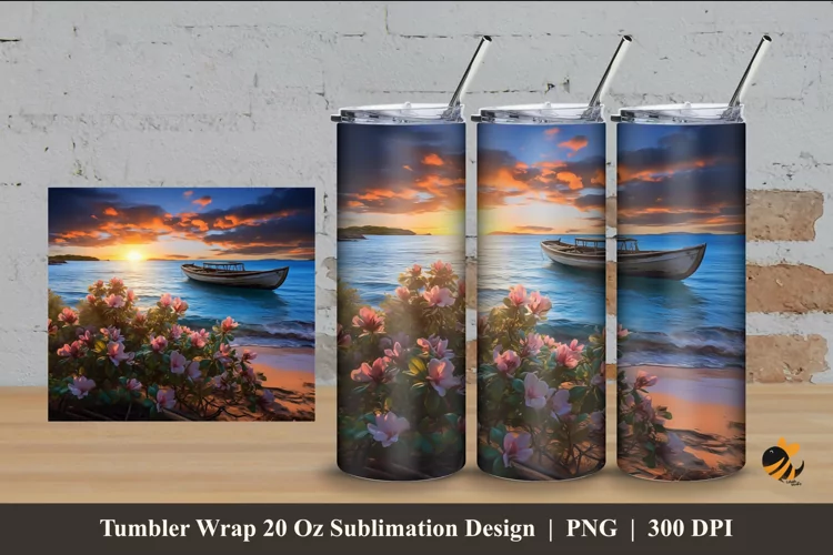 Floral Beach Tumbler Wrap Sublimation Design 4