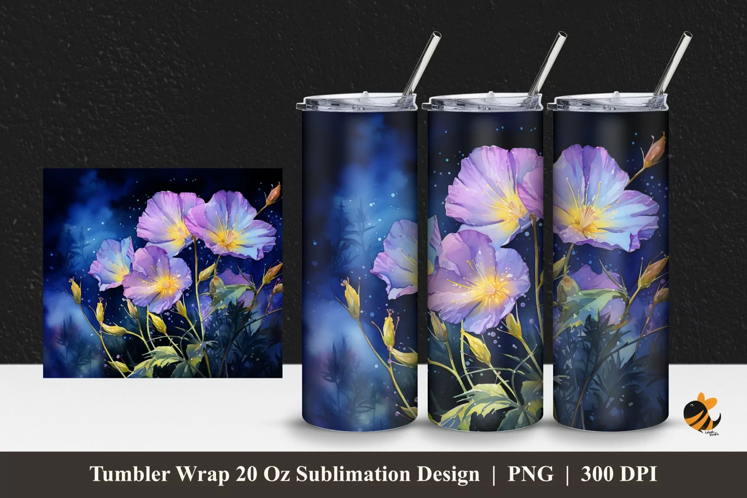 Evening Primrose Flower Tumbler Wrap Sublimation Design 1 example image 1