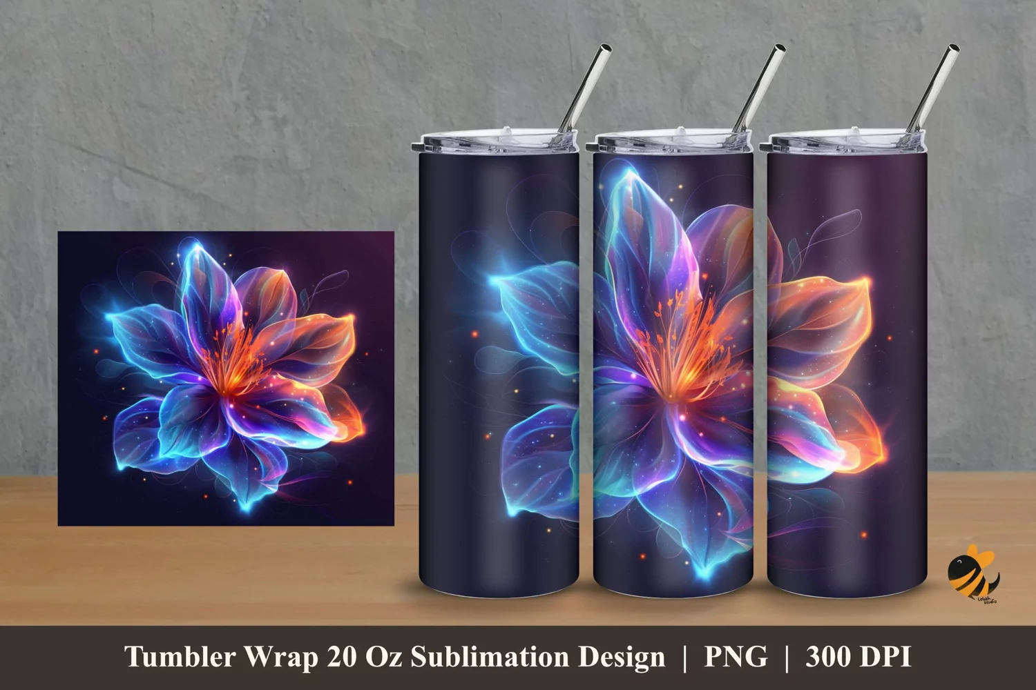 Fantasy Neon Flower Tumbler Wrap Sublimation Design 2 example image 1