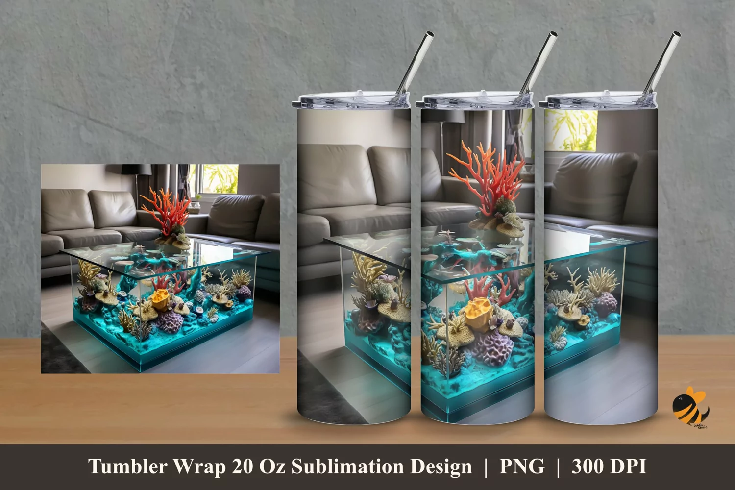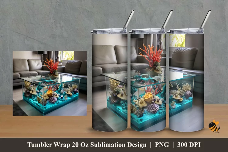 Table Aquarium Tumbler Wrap Sublimation Design