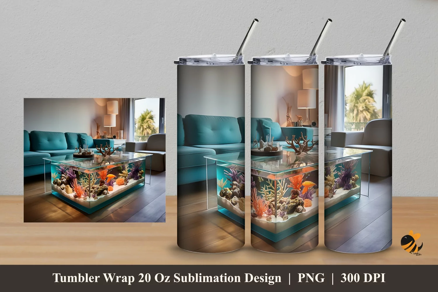 Table Aquarium Tumbler Wrap Sublimation Design