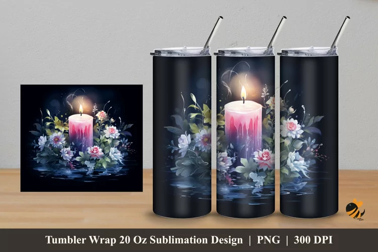 Flower And Candle Tumbler Wrap Sublimation Design