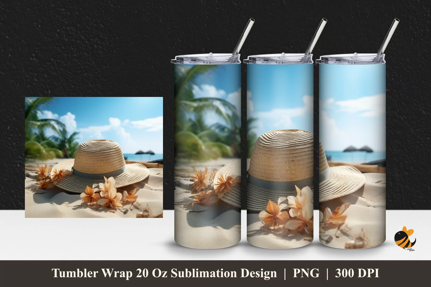 Beach Hat Tumbler Wrap Sublimation Design 1 example image 1