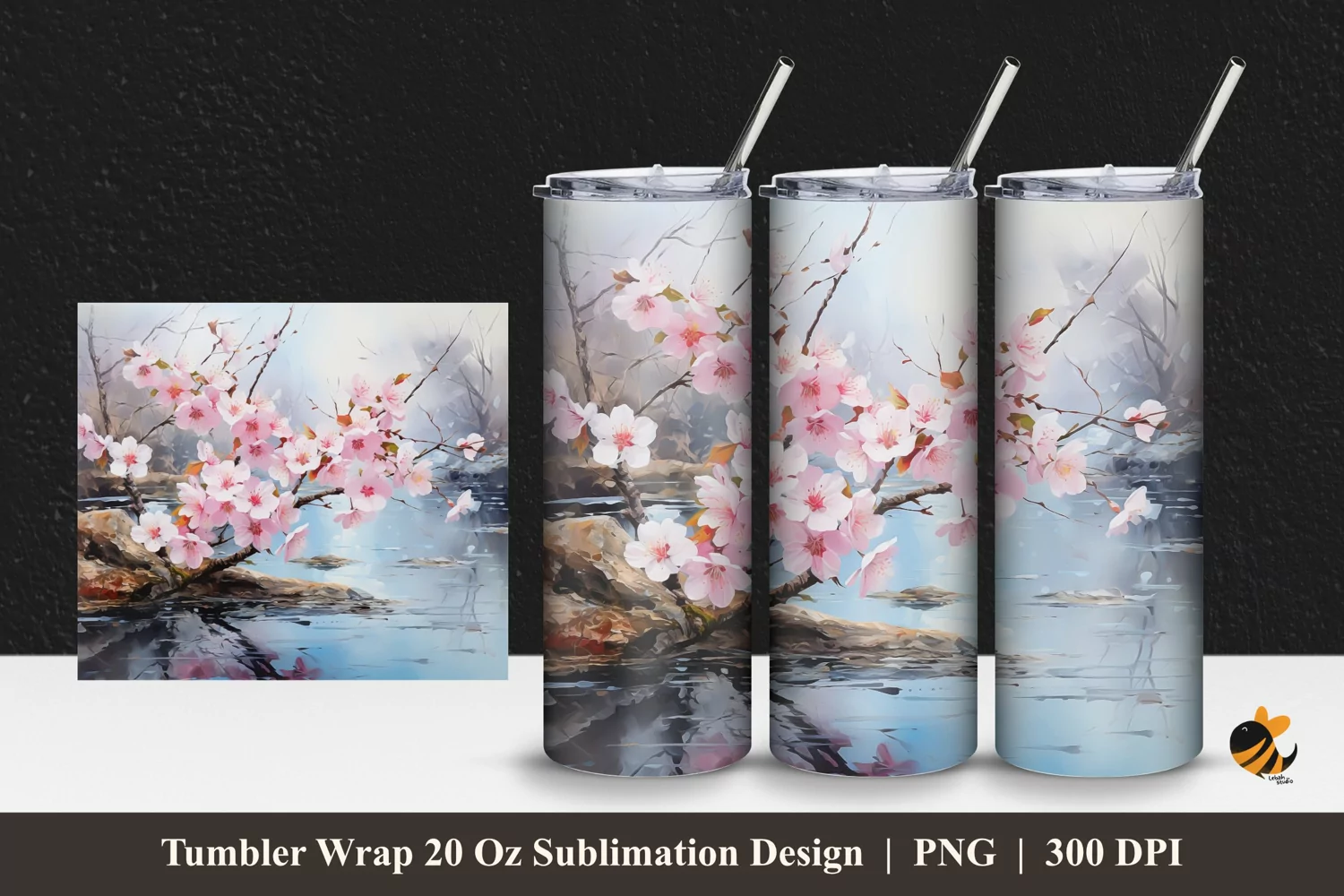 Sakura Flowers Tumbler Wrap Sublimation Design 1 example image 1
