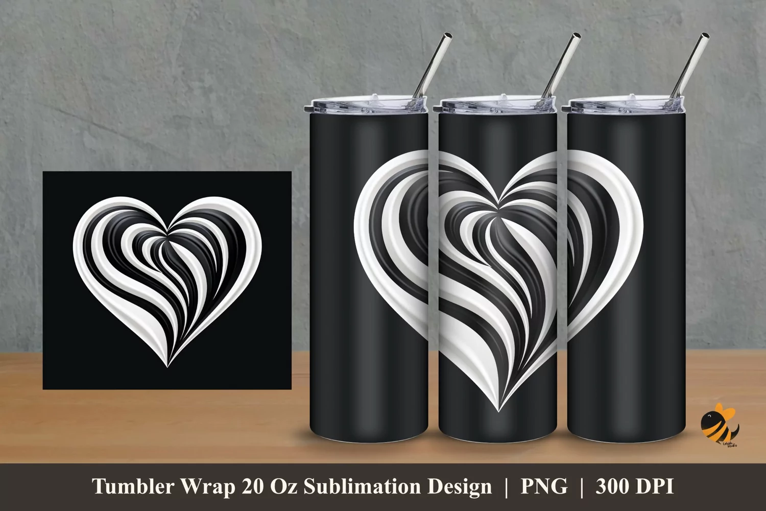 Black White Love Tumbler Wrap Sublimation Design 2 example image 1