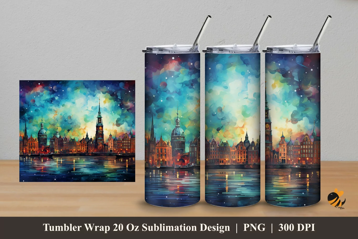 Similar Design Products to Watercolor City Tumbler Wrap Sublimation Design 5