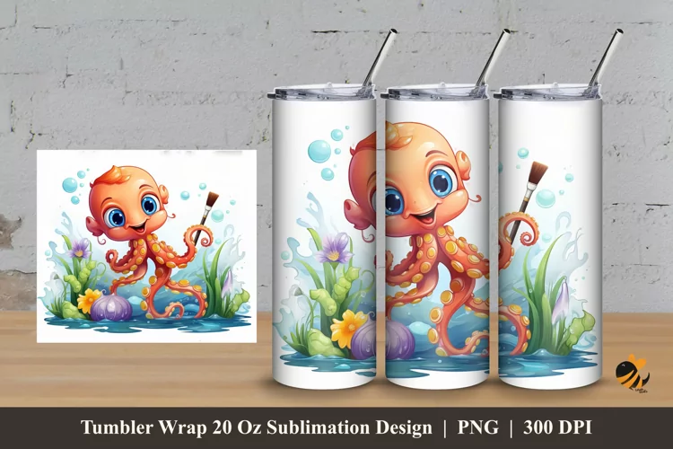 Similar Design Products to Octopus Watercolor Tumbler Wrap Sublimation Design 3