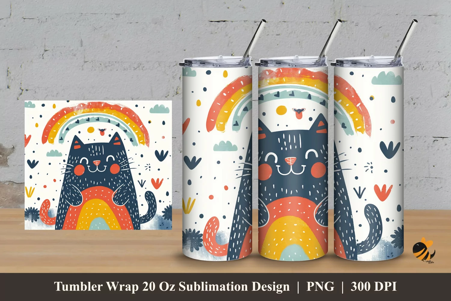 Rainbow And Cat Tumbler Wrap Sublimation Design 3 example image 1