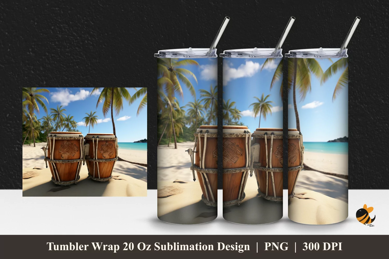 Bongo Drum At Beach Tumbler Wrap Sublimation Design 1 example image 1