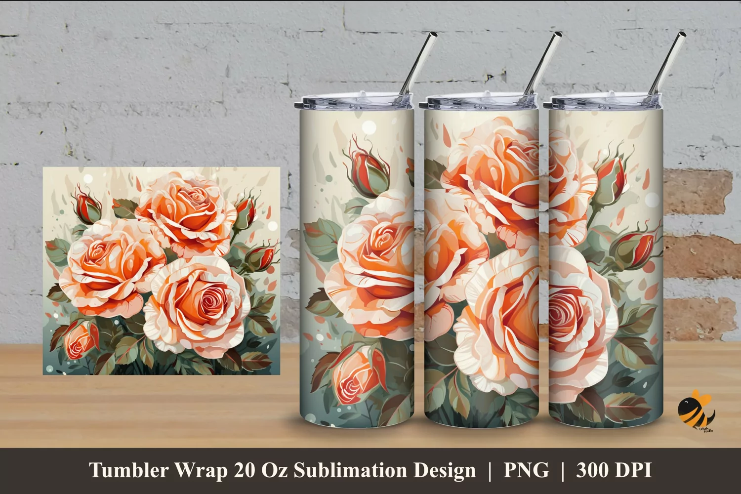 Rose Cream Orange Tumbler Wrap Sublimation Design 4 example image 1